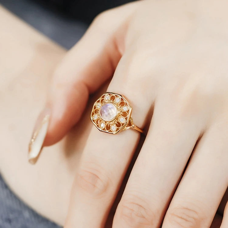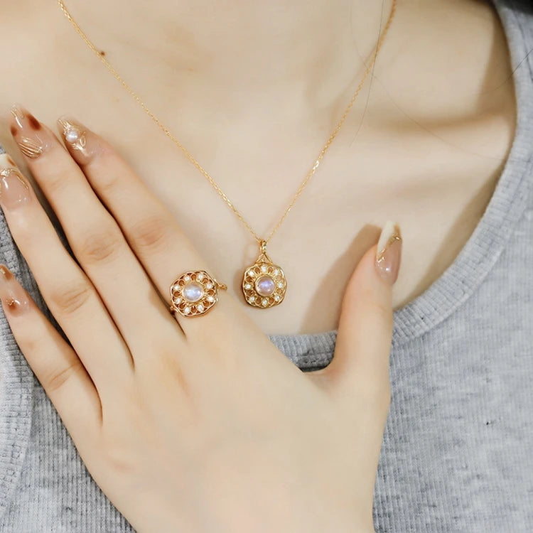 925 Sterling Silver 14K Gold Plated Gem Stone Gemstone Cz Zircon Vintage Court Style Geometric Natural Blue Moonstone Necklace 925 Sterling Silver 14K Gold Plated Gem Stone Gemstone Cz Zircon Vintage Court Style Geometric Natural Blue Moonstone Necklace