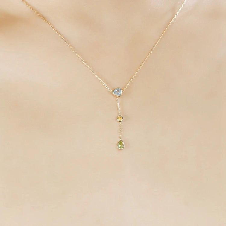 925 Sterling Silver 14K Gold Plated Gem Stone Gemstone Geometric Triangular Round Drops Sky Blue Topaz Citrine Peridot Necklace