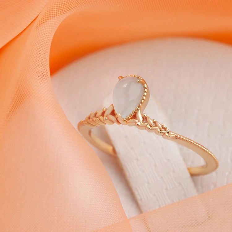 925 Sterling Silver 14K Gold Plated Gemstone Aquamarine Drop Stacked Ring
