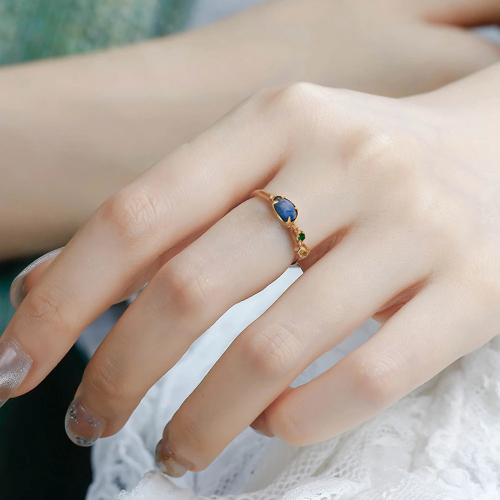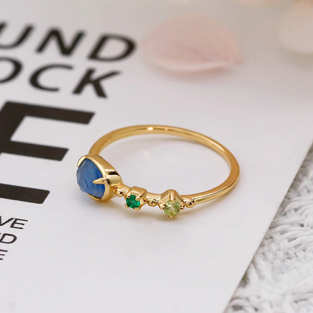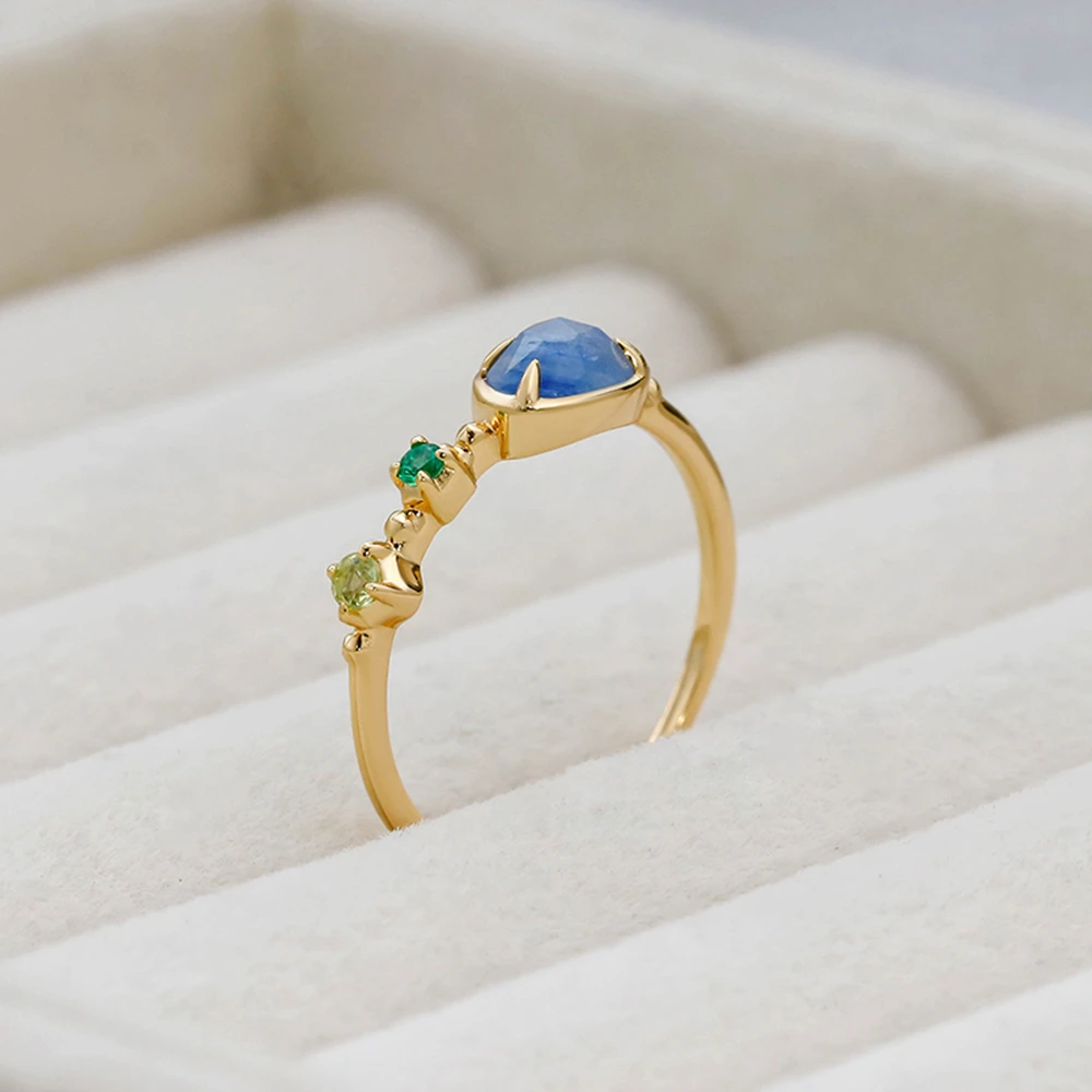925 Sterling Silver 14K Gold Plated Gemstone Geometric Isomorphs Drop Light Blue Crystal Stone Ring 925 Sterling Silver 14K Gold Plated Gemstone Geometric Isomorphs Drop Light Blue Crystal Stone Ring