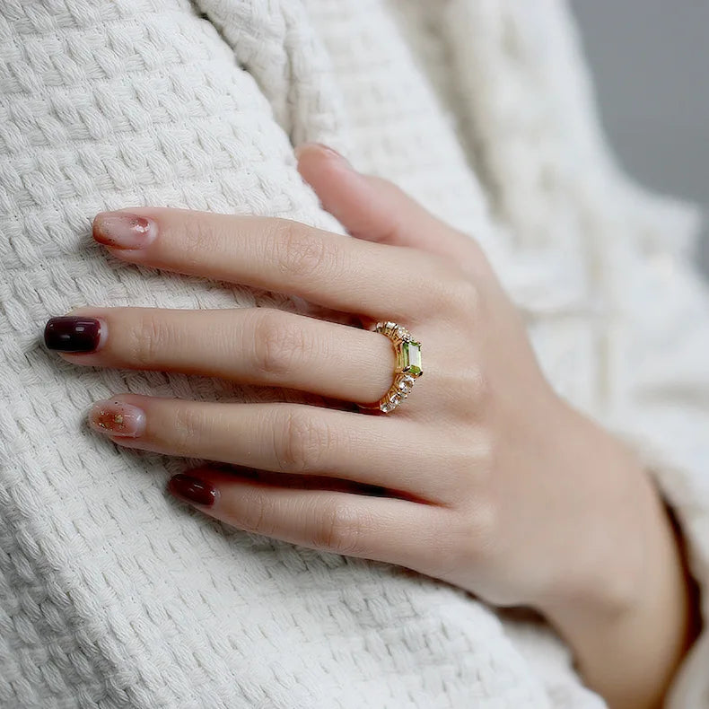 925 Sterling Silver 14K Gold Plated Gemstone Geometric Peridot Rectangular Sky Blue Topaz Quartz Natural Green Crystal Ring