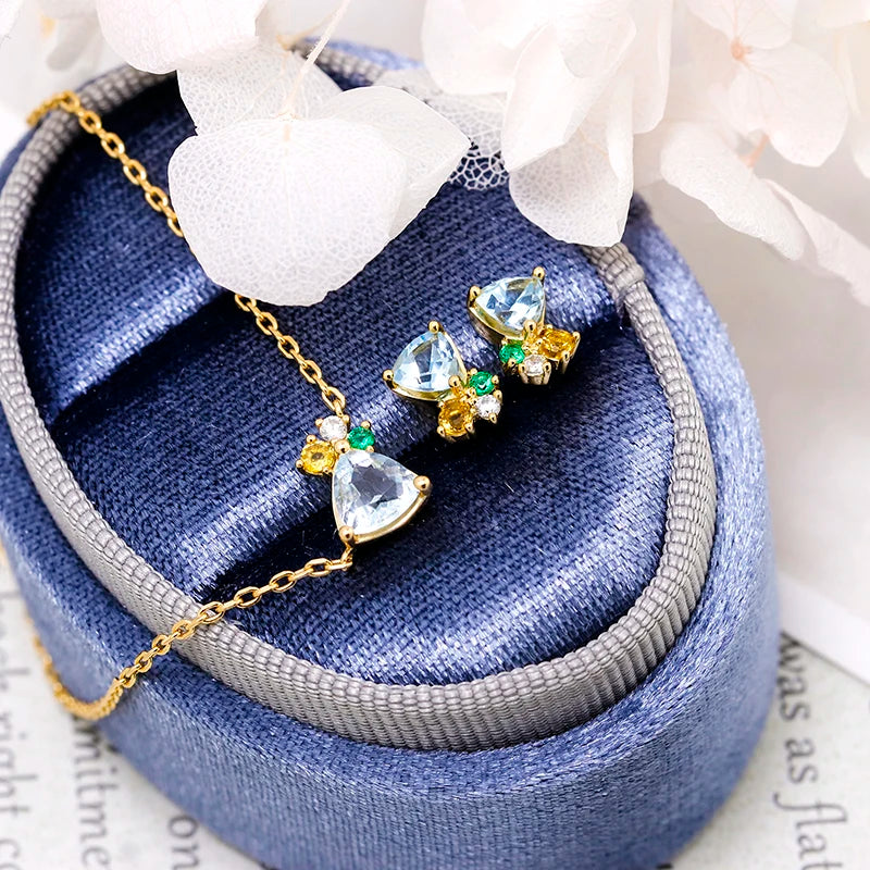 925 Sterling Silver 14K Gold Plated Gemstone Geometric Triangular Star Cz Zircon Topaz Citrine Simulate Emerald Stud Earrings