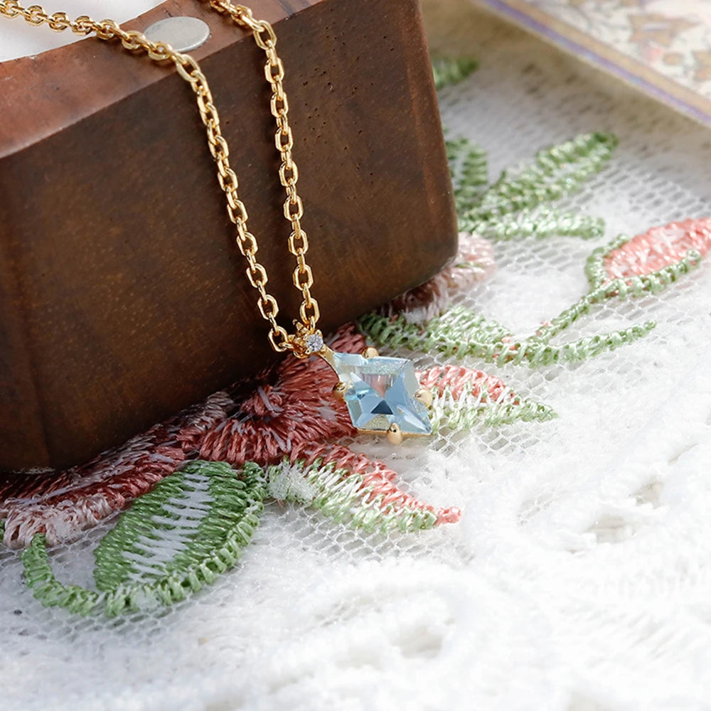 925 Sterling Silver 14K Gold Plated Gemstone Geometrical Bead Simple Diamond Topaz Necklace