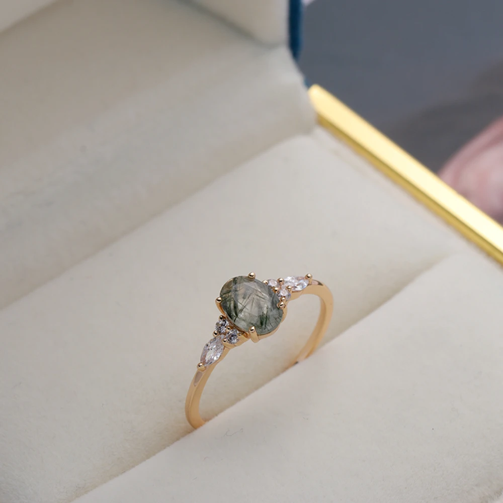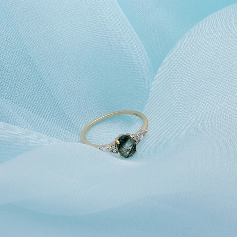 925 Sterling Silver 14K Gold Plated Gemstone Green Crystal Hair Shaped Personality Ring 925 Sterling Silver 14K Gold Plated Gemstone Green Crystal Hair Shaped Personality Ring