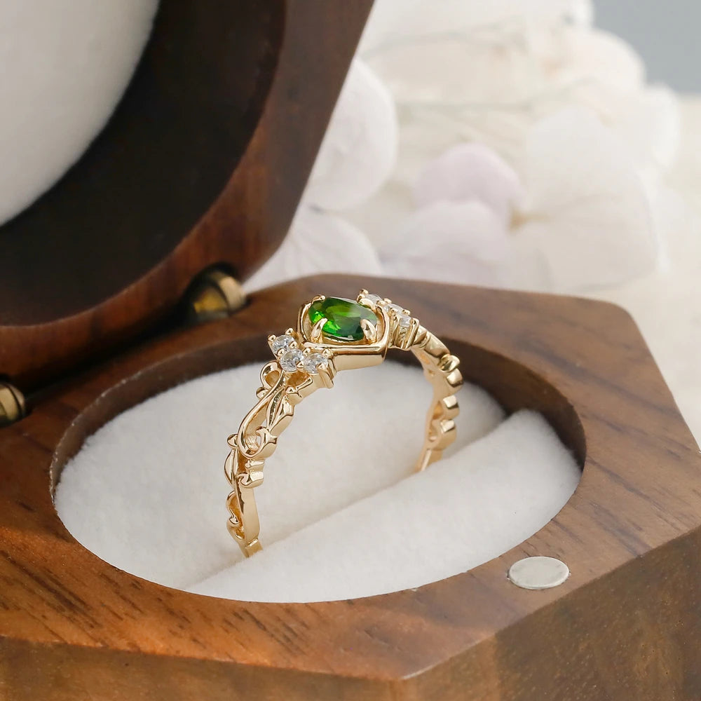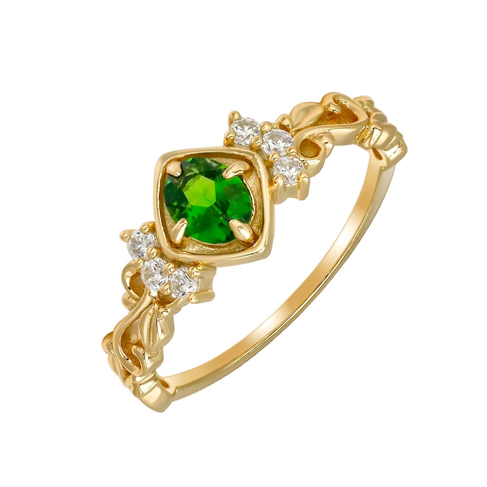 925 Sterling Silver 14K Gold Plated Gemstone Hollow Geometric Square Retro Cz Zircon Diopside Ring