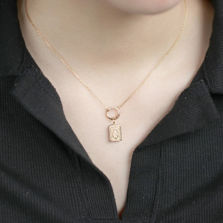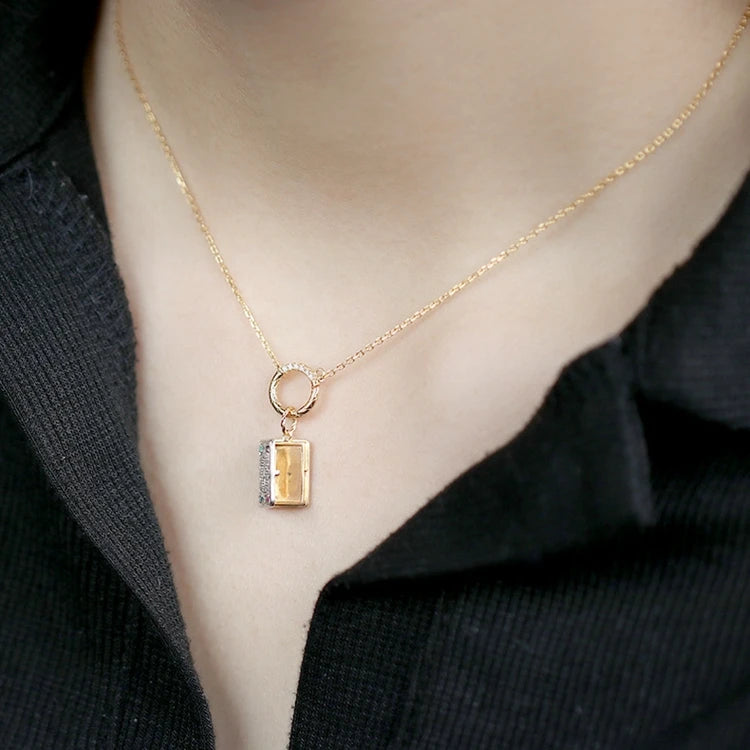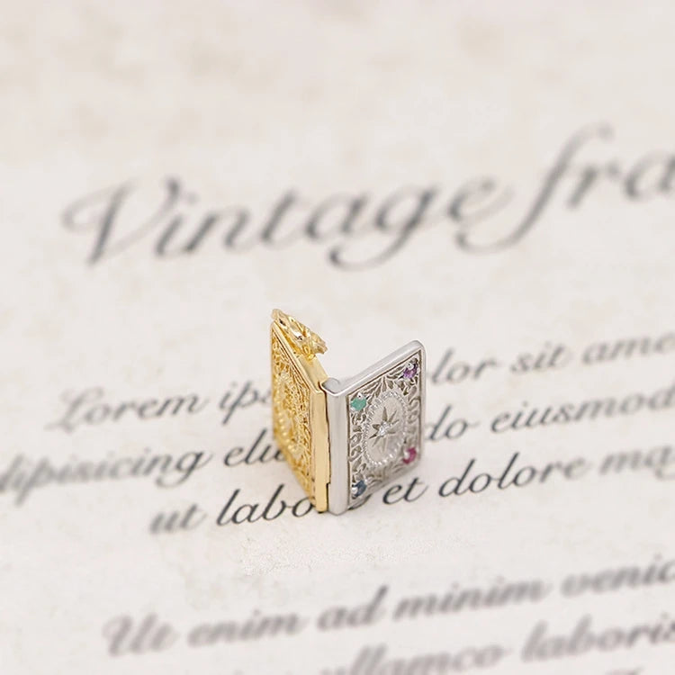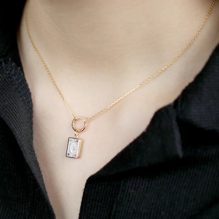 925 Sterling Silver 14K Gold Plated Gemstone Magic Book Natural Ruby Sapphire Emerald Lockets Pendant Necklace