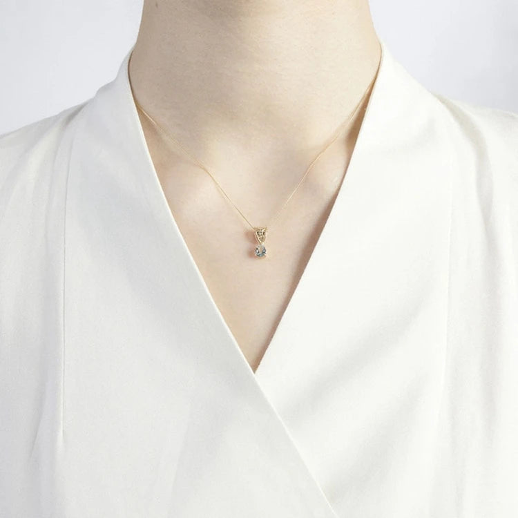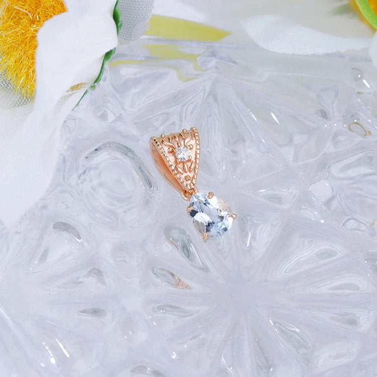 925 Sterling Silver 14K Gold Plated Gemstone Natural Aquamarine Classic Vintage Pendant