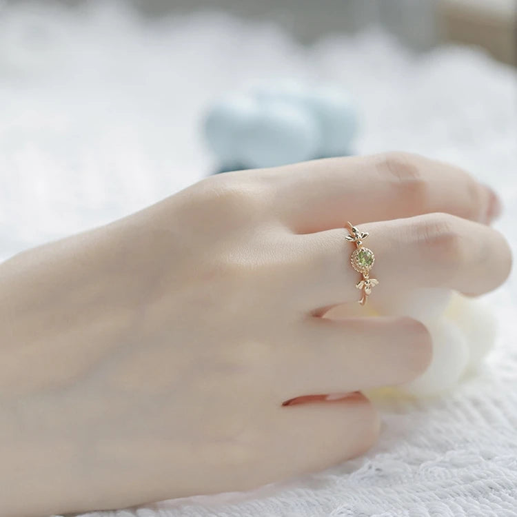925 Sterling Silver 14K Gold Plated Gemstone Natural Peridot Animal Jewelry Bee Ring