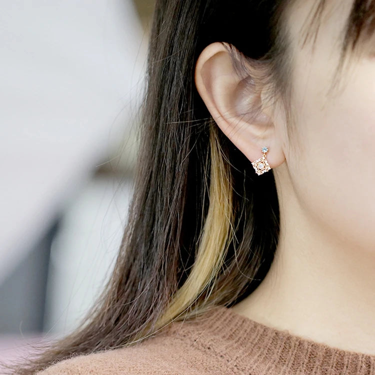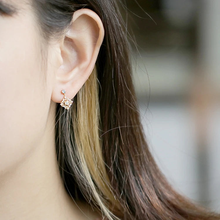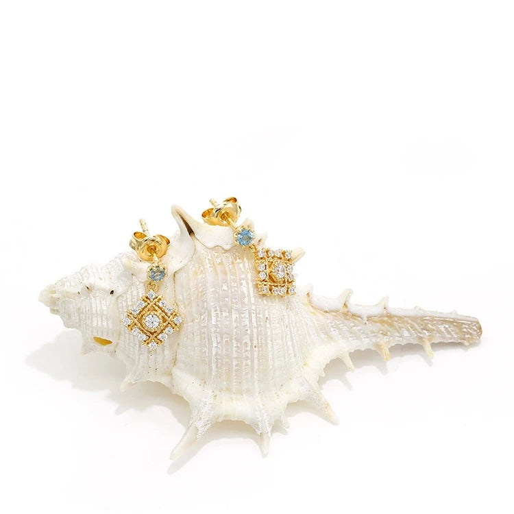 925 Sterling Silver 14K Gold Plated Gemstone Natural Topaz Pendant Geometry Earrings