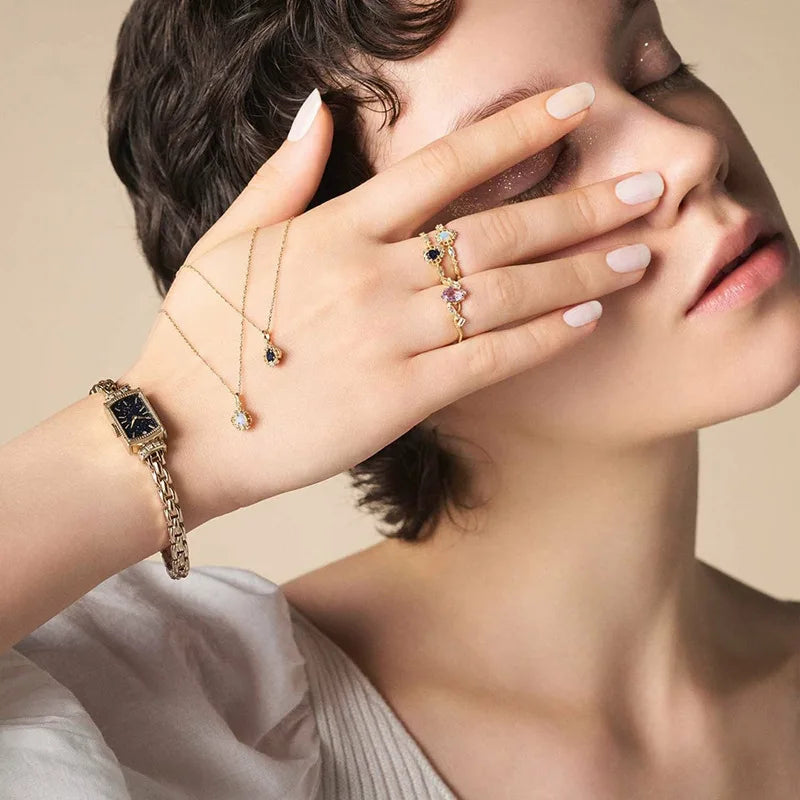 925 Sterling Silver 14K Gold Plated Gemstone Retro Geometric Circle Flower Aventurine Natural Australia Opal Necklace