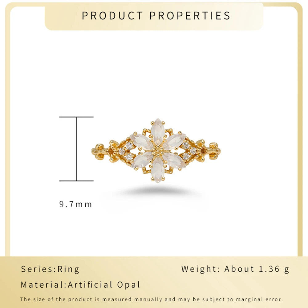 925 Sterling Silver 14K Gold Plated Gemstone Retro Hollow Flower Tanzanite Zircon Synthetic Artificial Opal Ring