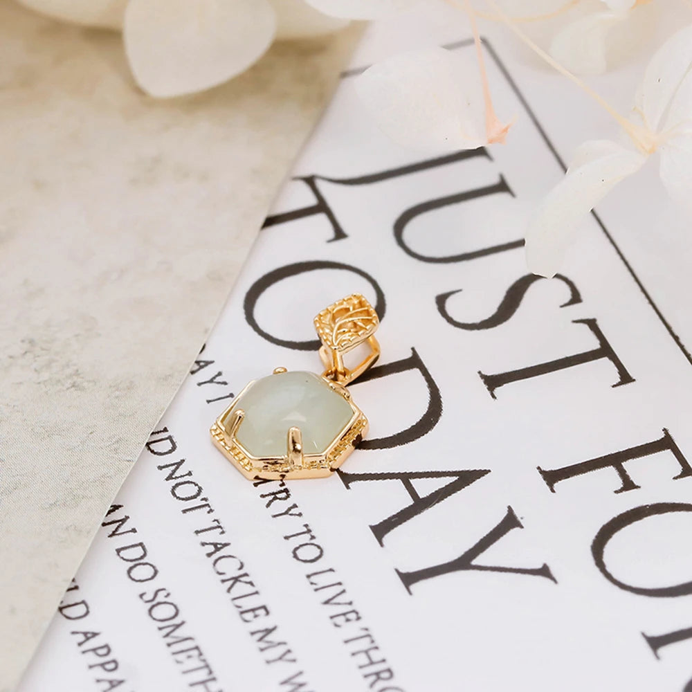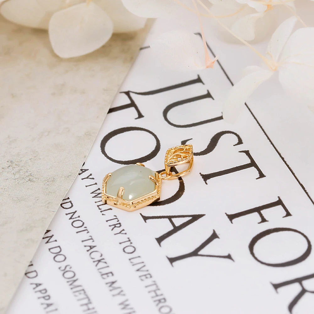 925 Sterling Silver 14K Gold Plated Gemstone Retro Vintage Hexagonal Jade Nephrite Necklace
