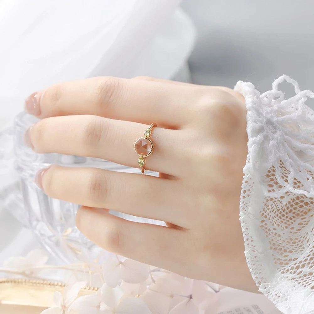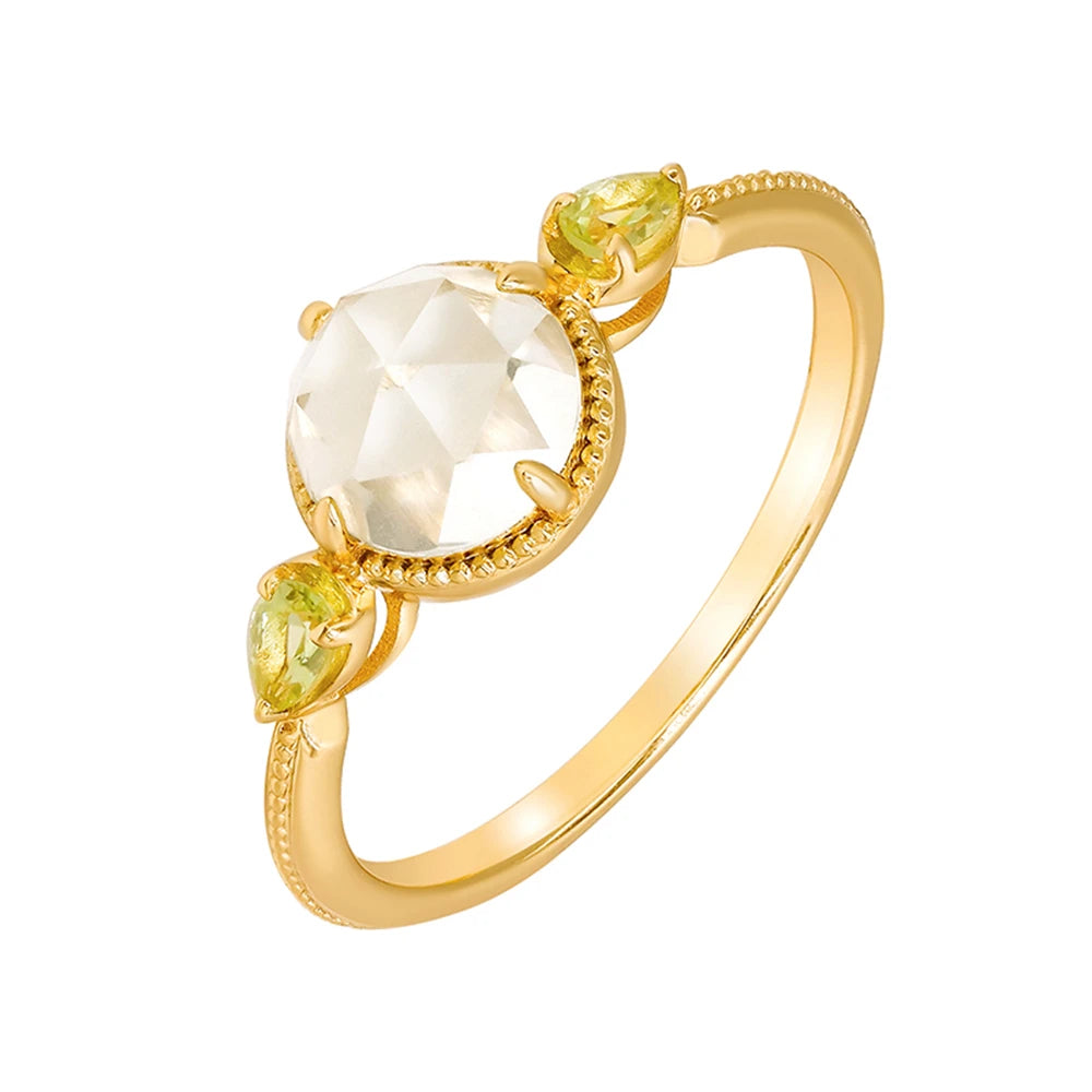 925 Sterling Silver 14K Gold Plated Gemstone Round Stone Peridot Green Amethyst Ring