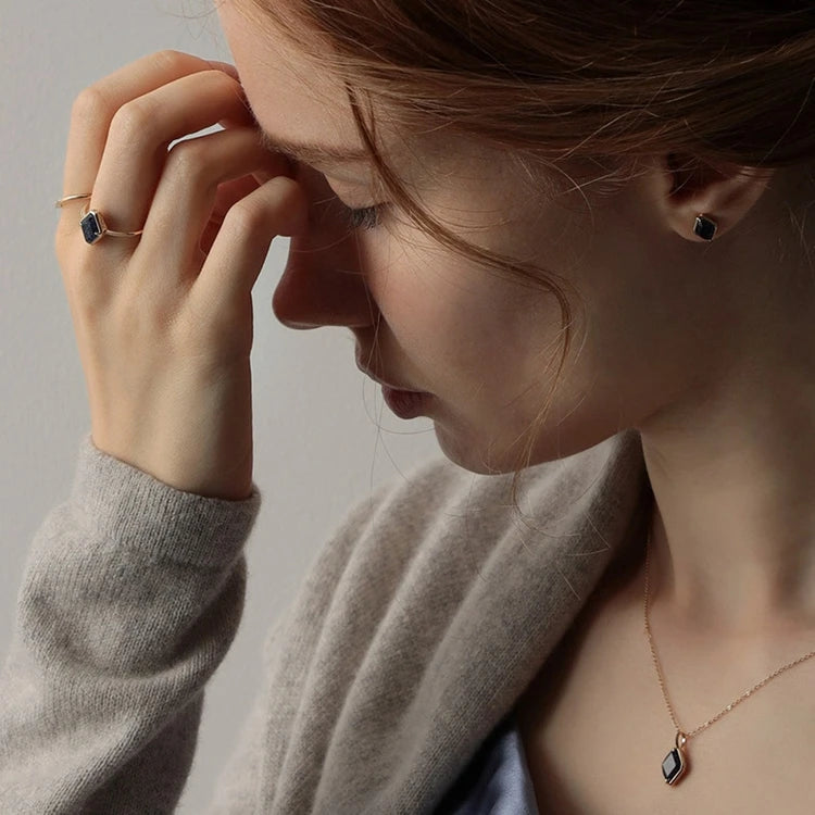 925 Sterling Silver 14K Gold Plated Gemstone Series Christmas Limited Edition Geometric Vintage Blue Sandstone Ring