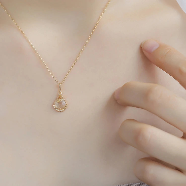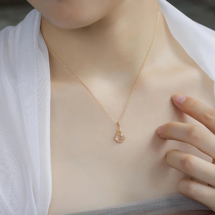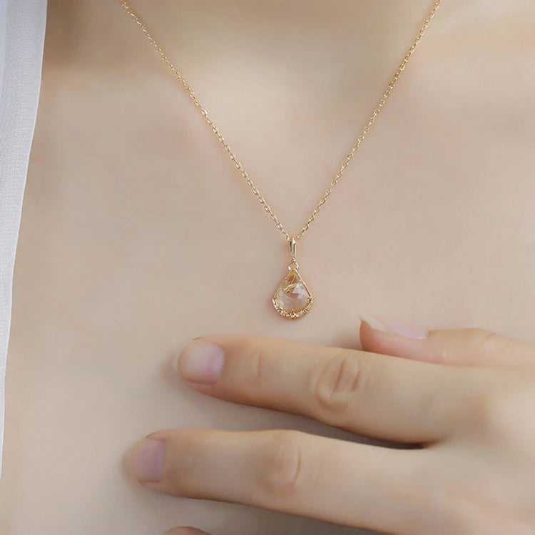 925 Sterling Silver 14K Gold Plated Gemstone Series Vintage Rose Cut Water Droplets Blonde Crystal Pendant