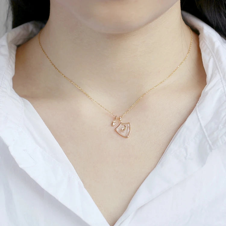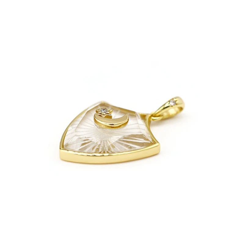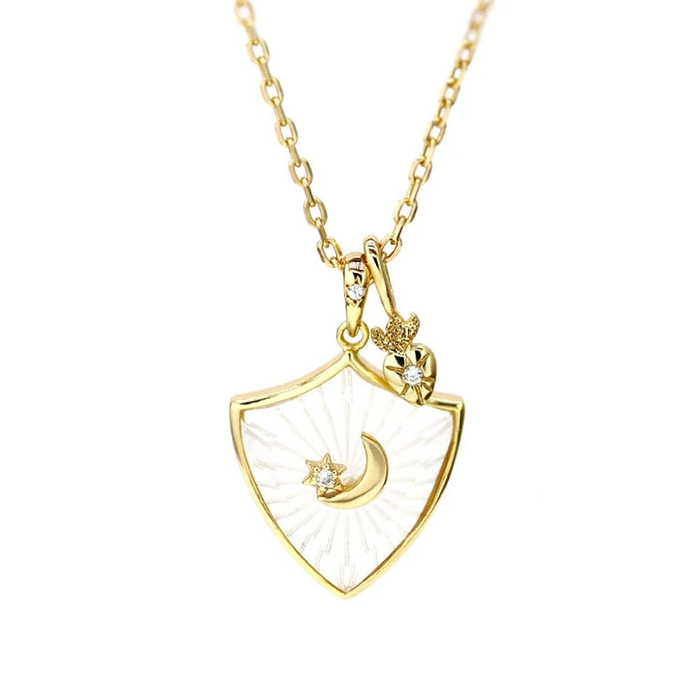 925 Sterling Silver 14K Gold Plated Gemstone Shield Rock Crystal Moon Necklace