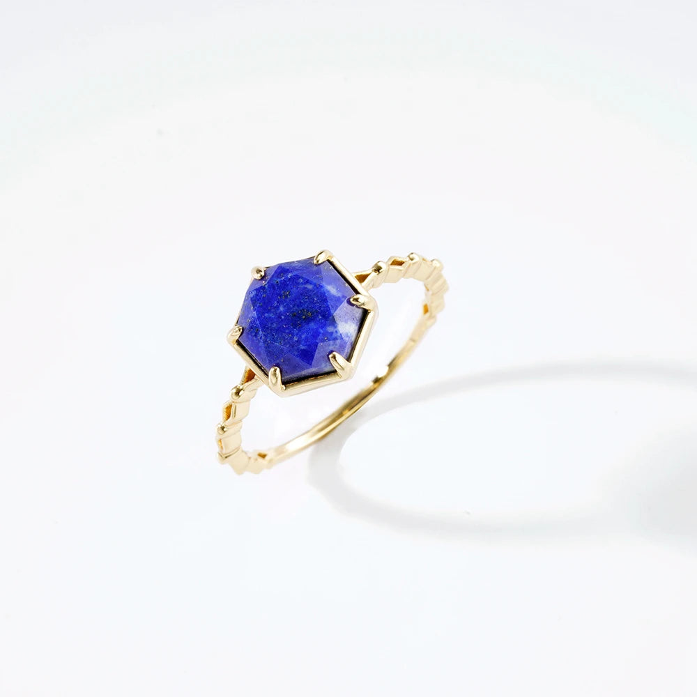 925 Sterling Silver 14K Gold Plated Gemstone Star Starry Sky Octagon Lazurite Lapis Lazuli Ring