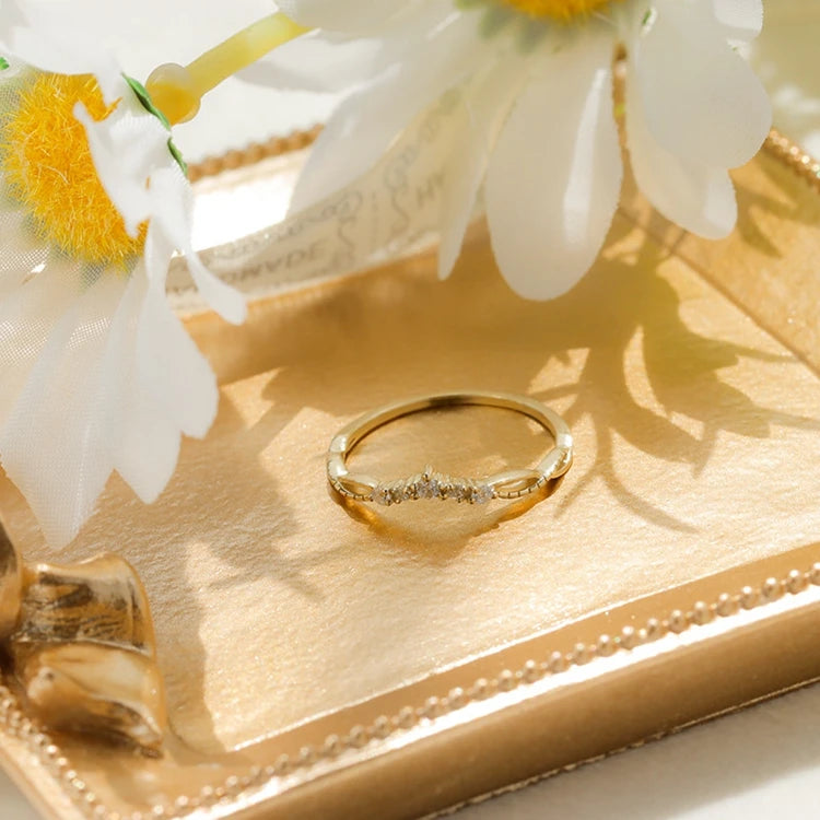 925 Sterling Silver 14K Gold Plated Gemstone V Shape Hollow Ring Stacking Rings