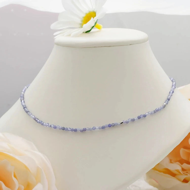 925 Sterling Silver 14K Gold Plated Labradorite Coloured Beads Round Tanzanite Chain Necklace With Matching Pendant Available