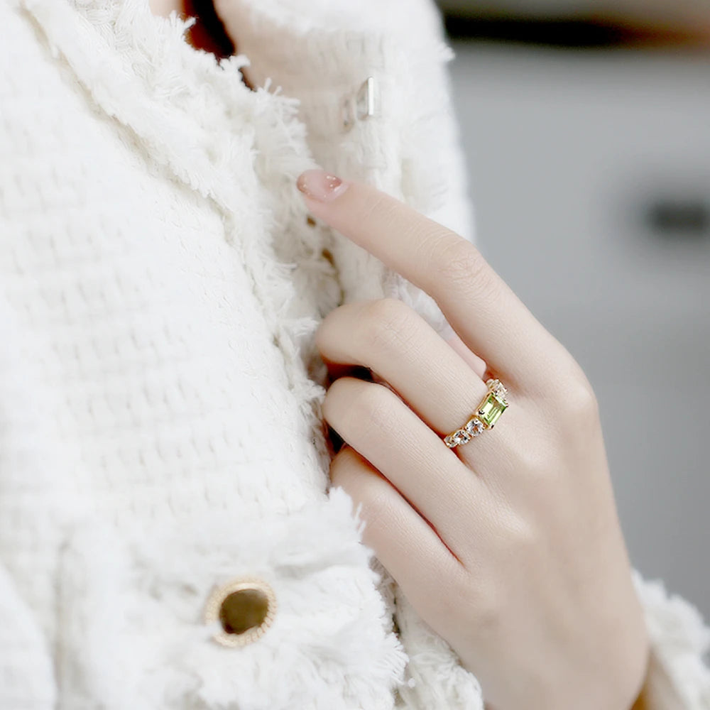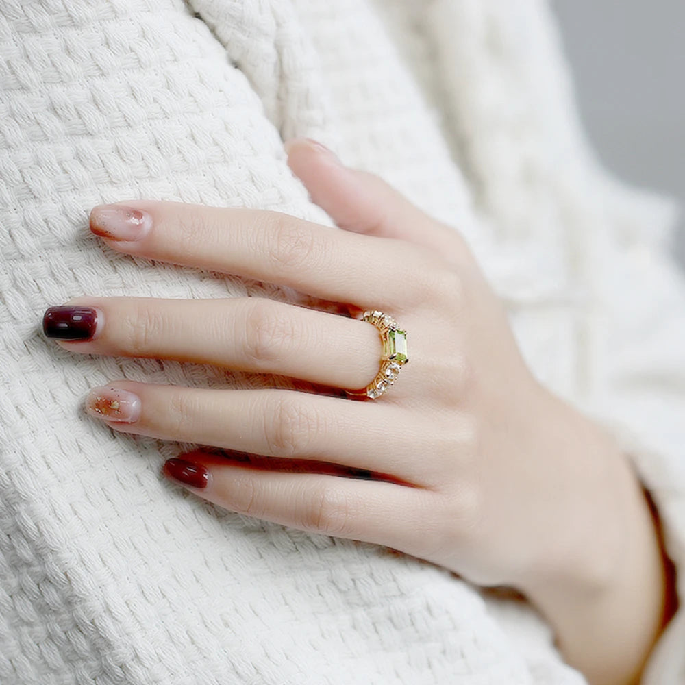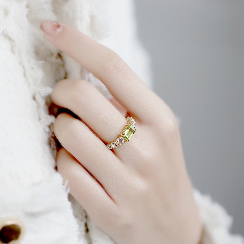 925 Sterling Silver 14K Gold Plated Rectangle Rectangular Green Peridot Ring Topaz Rings