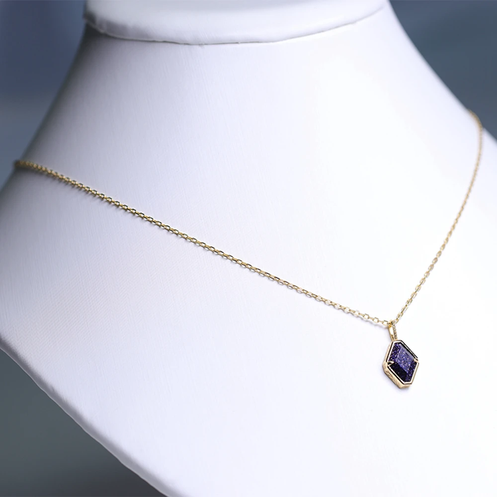 925 Sterling Silver 14K Plated Gemstone Blue Sand Gold Stone Sky Star Shaped Aventurine Necklace 925 Sterling Silver 14K Plated Gemstone Blue Sand Gold Stone Sky Star Shaped Aventurine Necklace