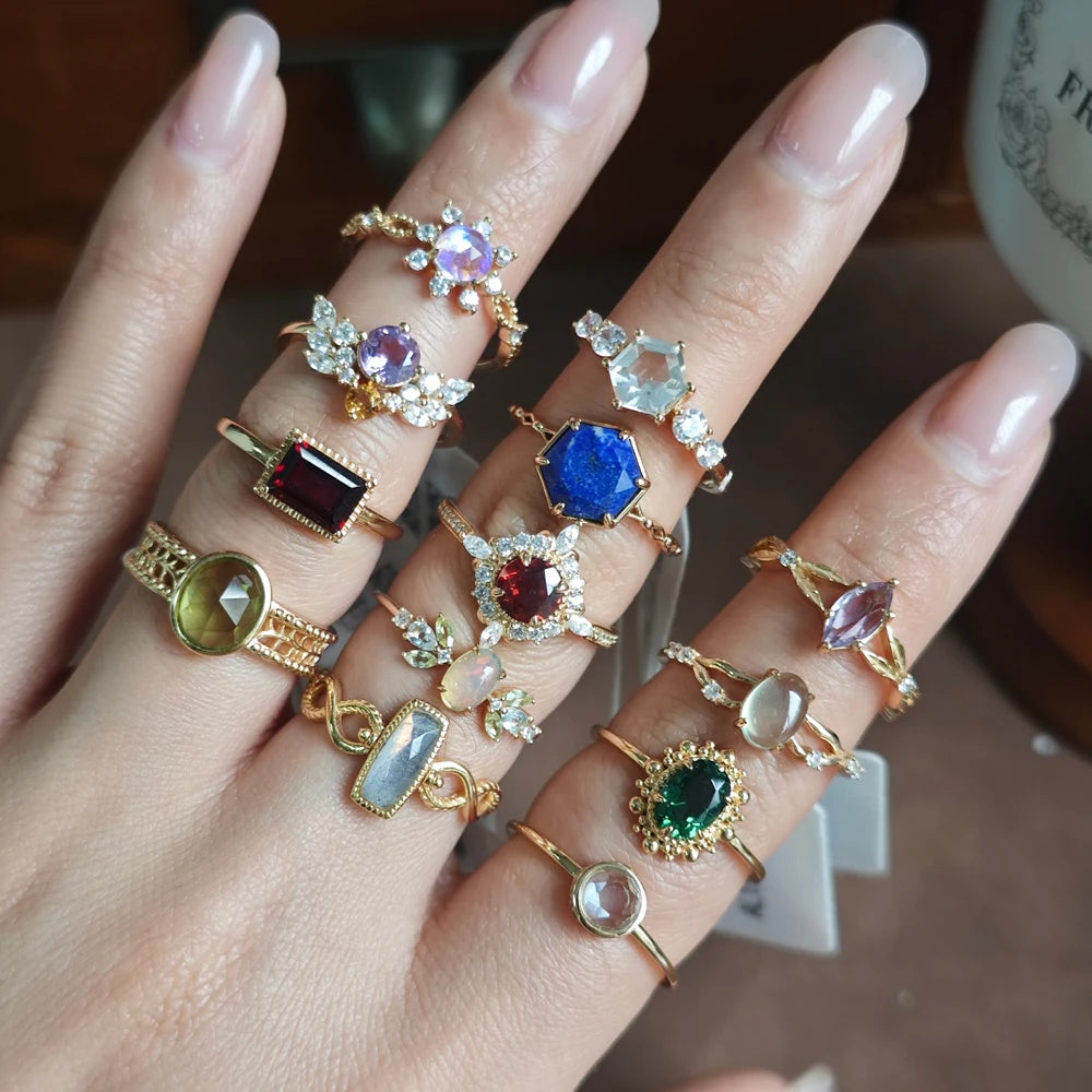925 Sterling Silver Gemstone Fine Jewelry Rings Initial Gold Engagement Amethyst Peridot Tanzanite Ruby Malachite Ring Joyeria