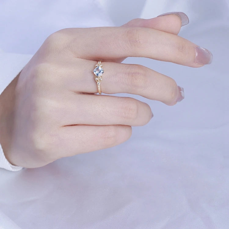 Anillos De Piedras Preciosas 925 Sterling Silver 14K Gold Plated Gemstone Zircon Gem Stones Natural Square Sky Blue Topaz Ring