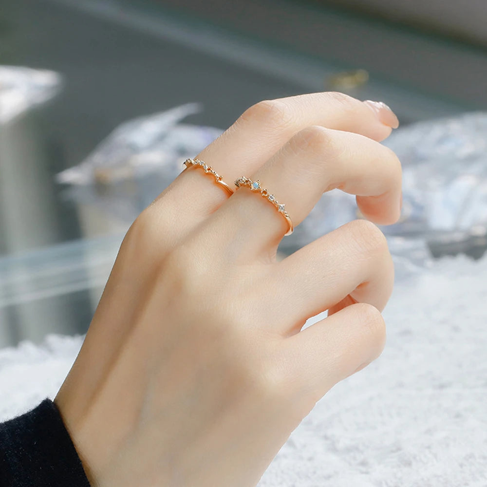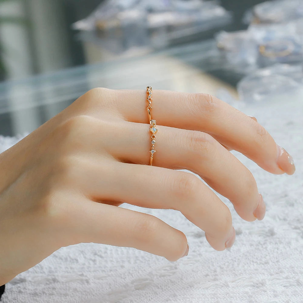 Bague Fleur 925 Sterling Silver 14K Gold Plated Gem Stone Gemstone Retro Cz Zircon Australian Opal Two Piece Gem Stone Ring Set