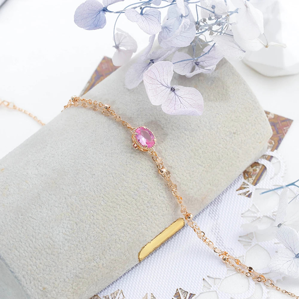 Bijoux Pour Femme 925 Sterling Silver 14K Gold Plated Gemstone Double-Layer Chain Pink Red Corundum Bracelet
