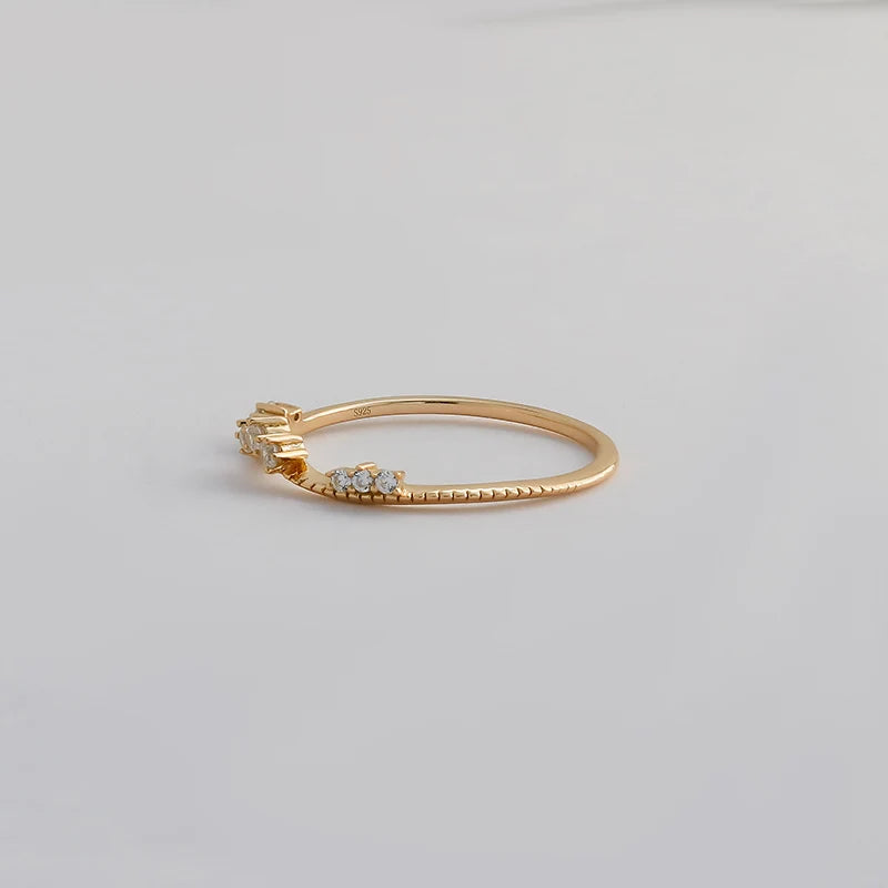 Chic 925 Sterling Silver 14K Gold Plated V-Shaped Ring with CZ Zircon Curve Design Fine Jewelry for Women