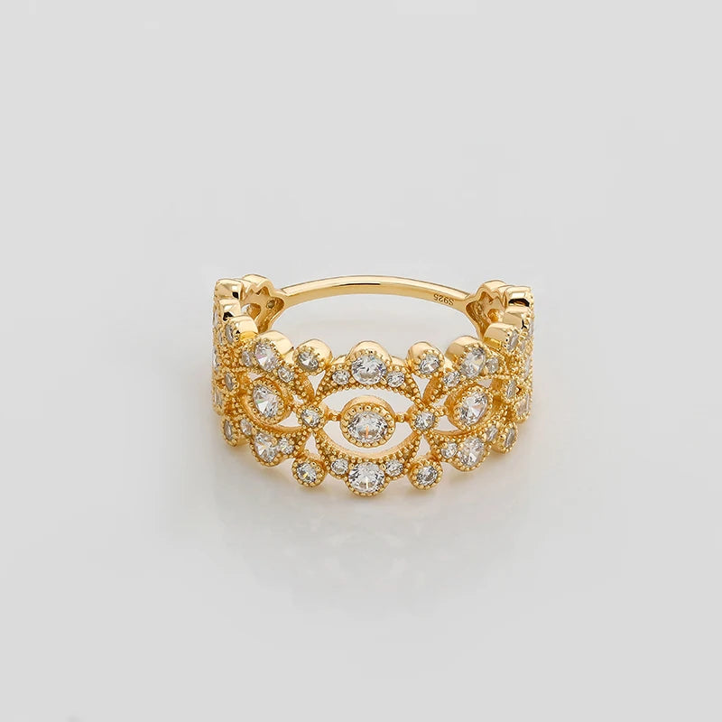 Dunli Jewelry 2024 Spring New Product Euroand American Style Lace Hollow Fashion High Grade Zircon Ring S925 Silver Plated Gold