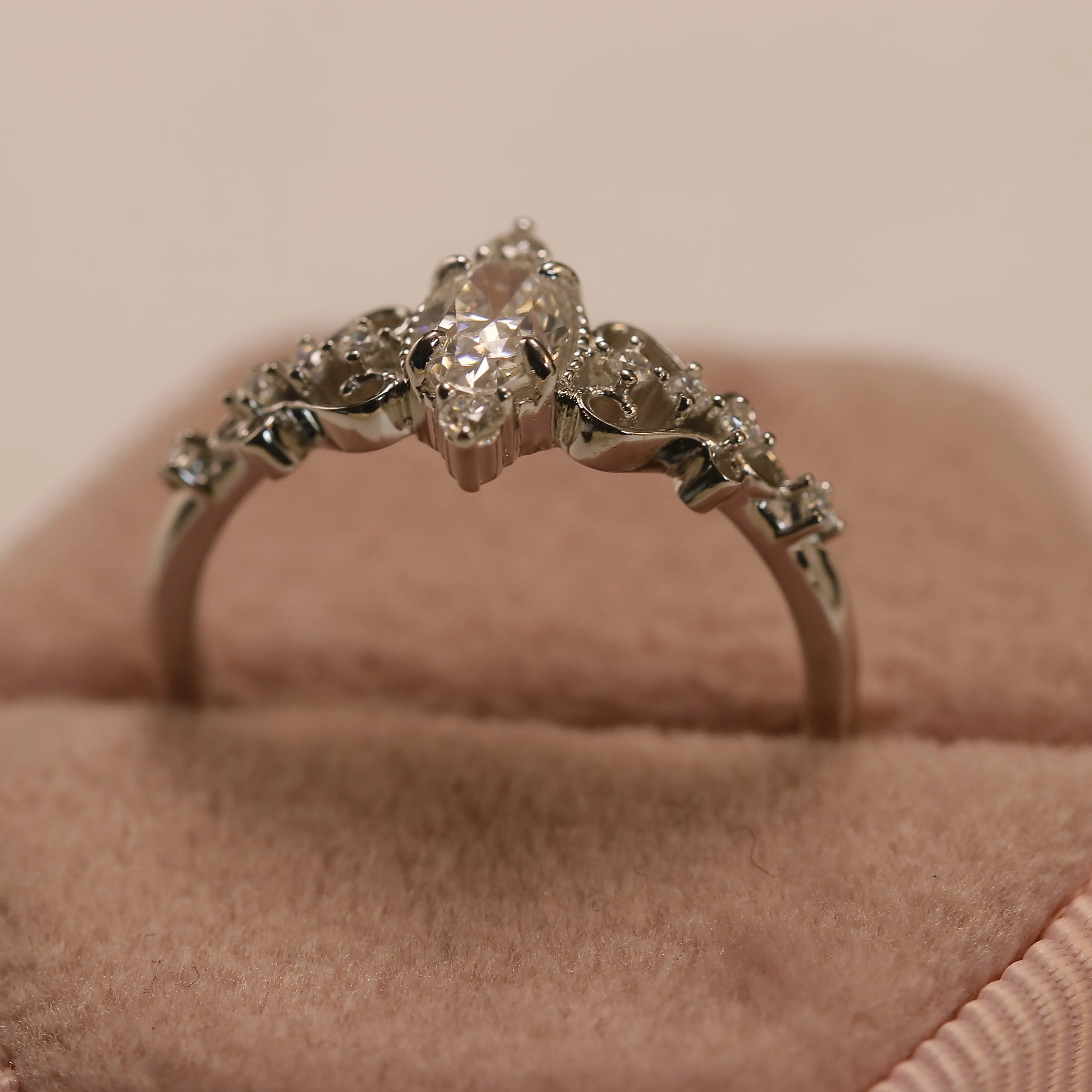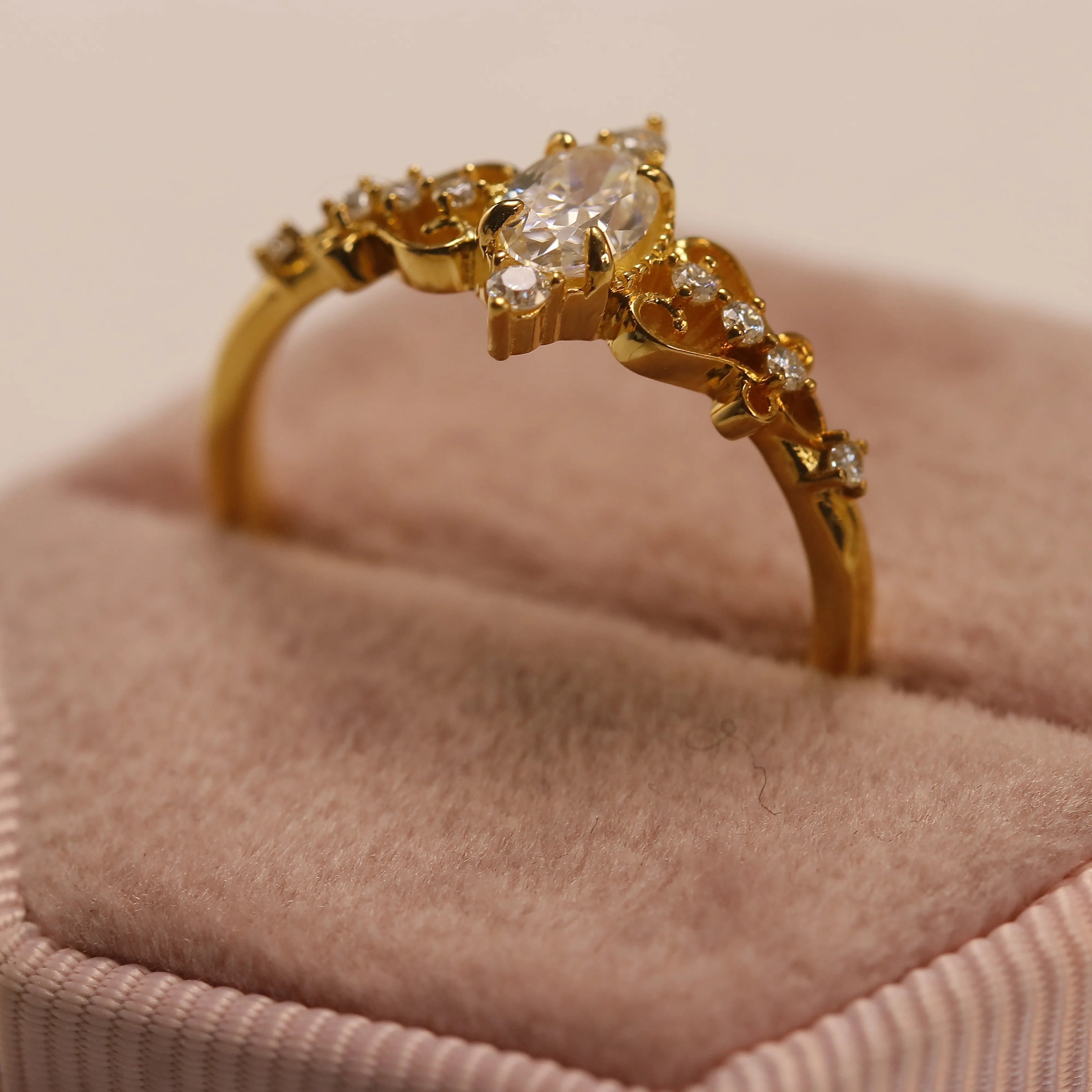Elegant Hollow Stainless Steel Ring with Oval Moissanite Gem - Trendy Jewelry Gift