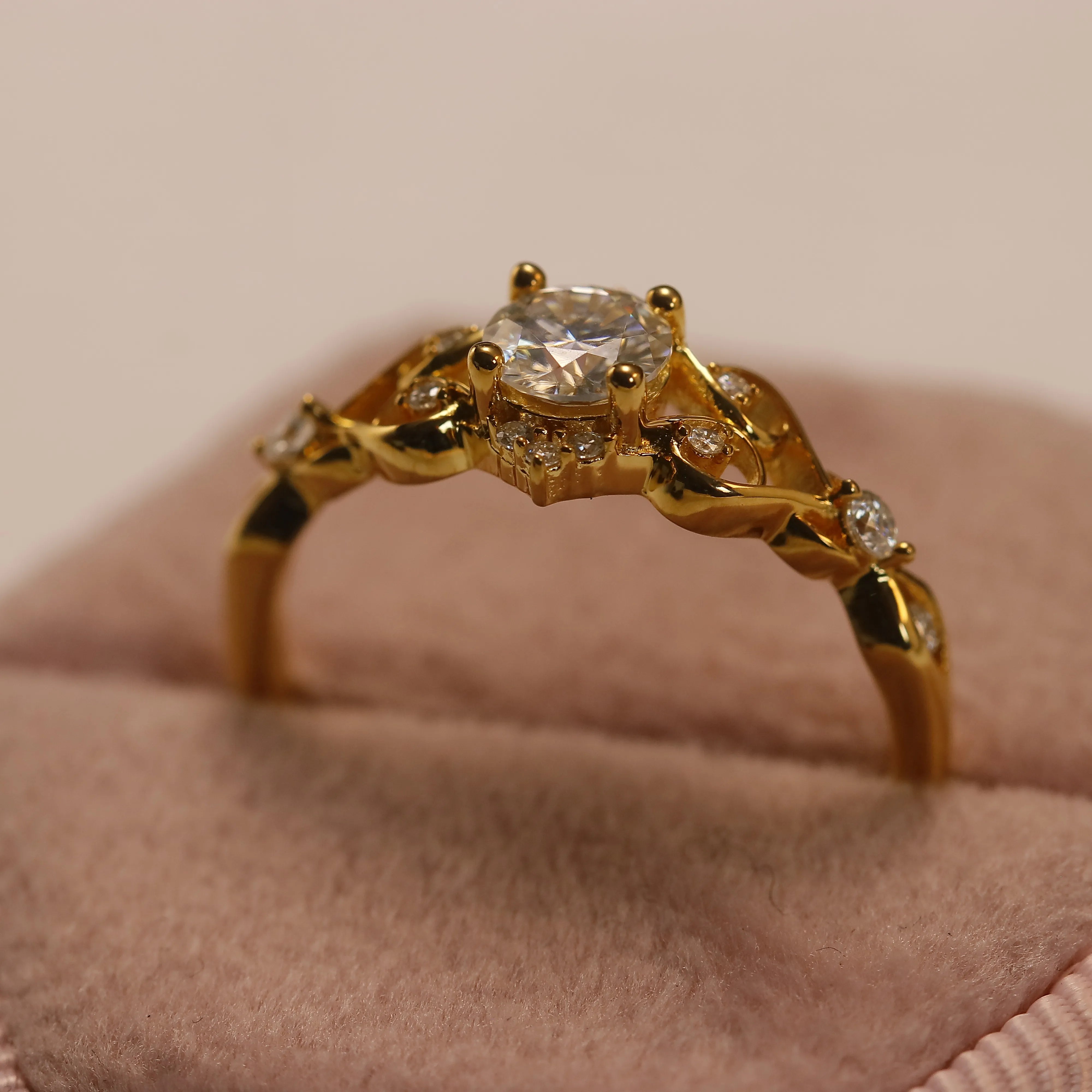Elegant Hollow Stainless Steel Ring with Round Moissanite Gem - Trendy Jewelry Gift
