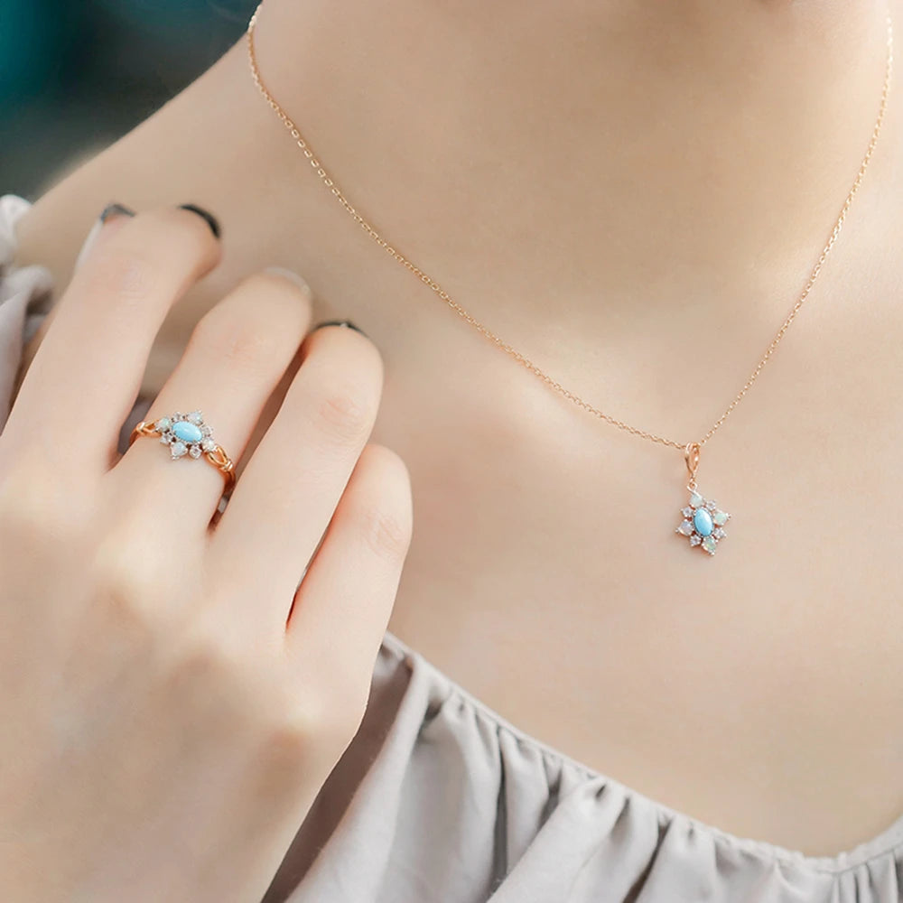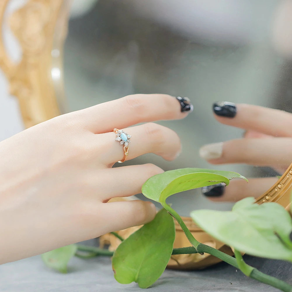 Gem Vintage Anemone Rhombus Natural Turquoise Opal Topaz Ring