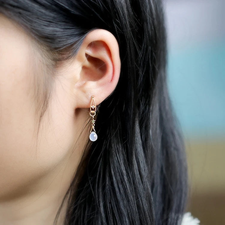 EmotiEmotional Factory 925 Sterling Silver 14K Gold Plated Gemstone White Chalcedony Premium ZIRCON Star Pendant Earrings