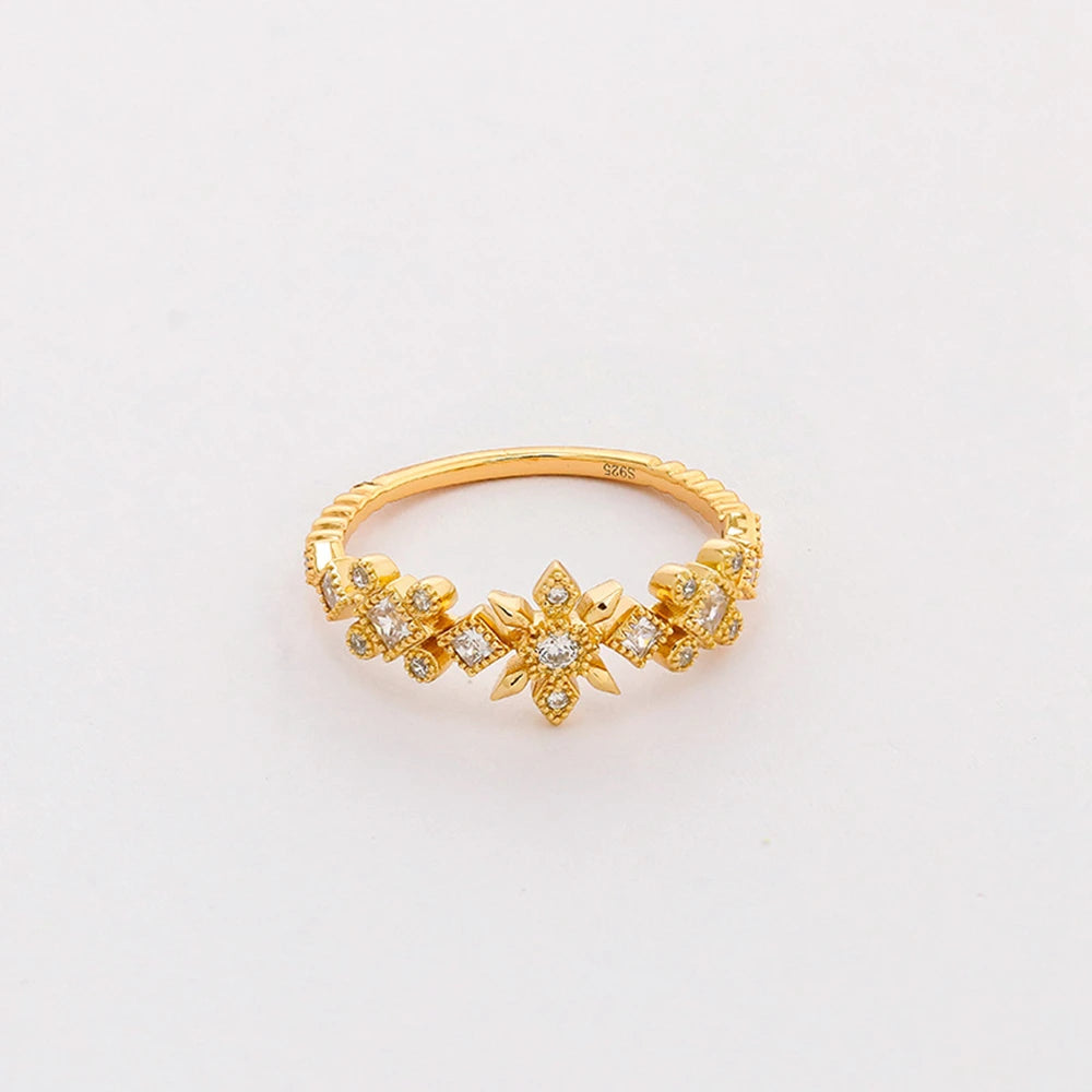 Emotional 925 Sterling Silver 14K Gold Plated Gem Stone Gemstone Cz Zircon Bead Flower Haute Couture Full Set Zirconia Ring