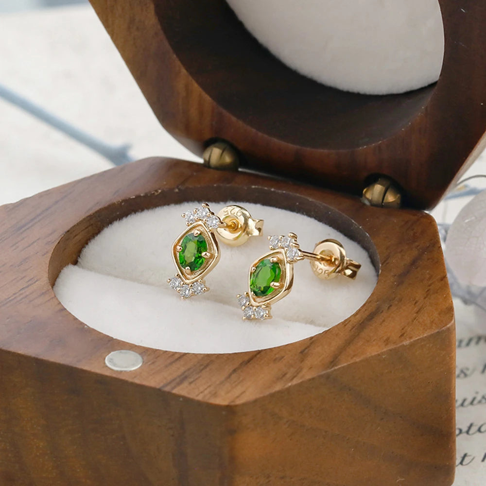 Emotional 925 Sterling Silver 14K Gold Plated Gem Stone Gemstone Hollow Geometric Square Retro Cz Zircon Diopside Earrings