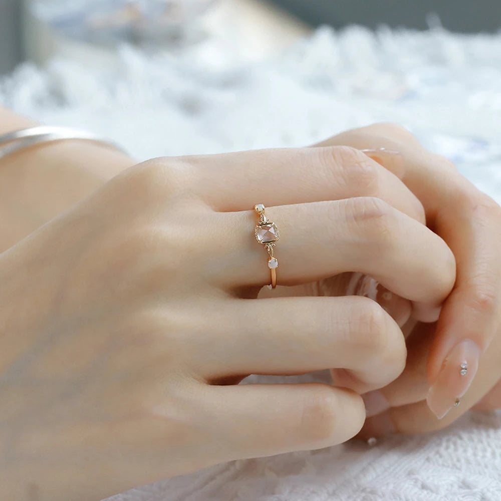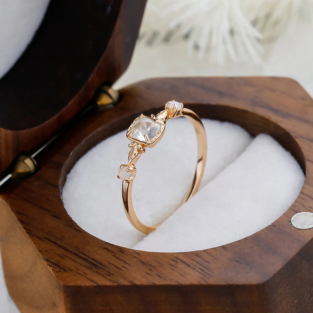 Emotional 925 Sterling Silver 14K Gold Plated Gem Stone Geometric Square White Rock Crystal Natural Australian Opal Ring
