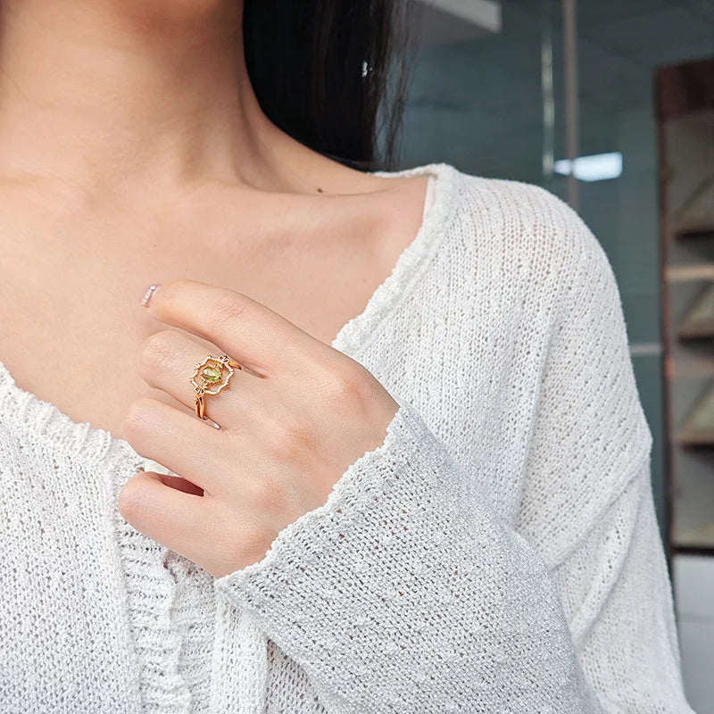 Emotional 925 Sterling Silver 14K Gold Plated Gemstone Picture Frame Premium Set Natural Peridot White Zirconia Vine Ring