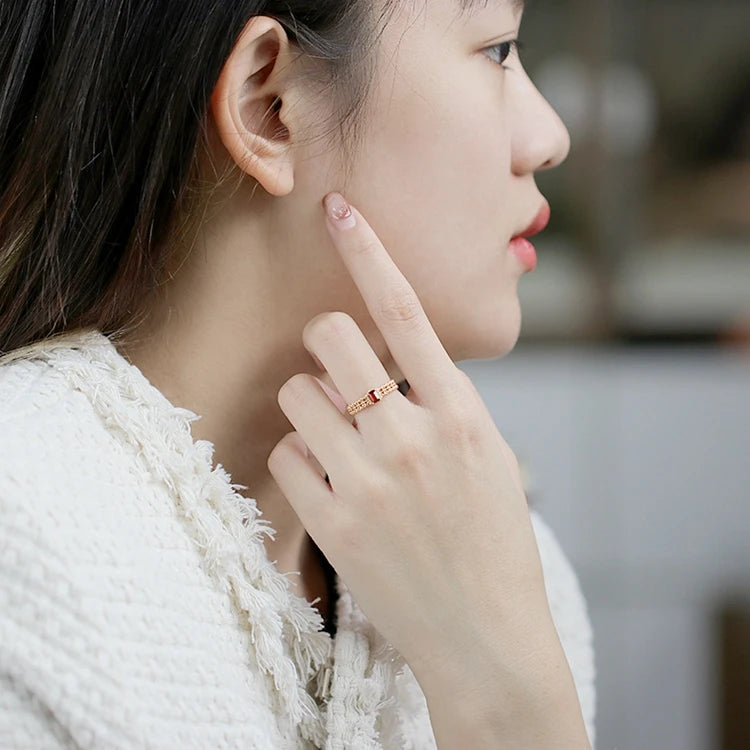 Emotional Anel Ajustavel Factory 925 Sterling Silver 14K Gold Plated Gemstone Natural Red Garnet Pattern Adjustable Ring