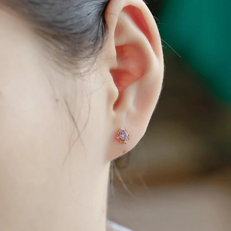 Emotional Custom 925 Sterling Silver 14K 18K Gold Plated Gemstones Classic Water Drop Shape Geometry Zircon Tanzanite Earrings