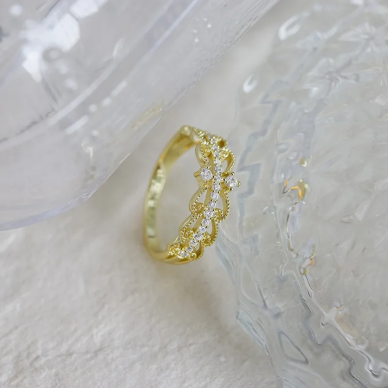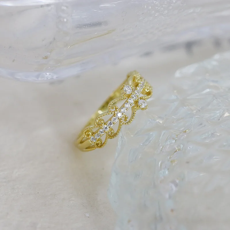 Emotional Factory 925 Sterling Silver 14K Gold Plated Cz Zircon Lace Hollow Ring Emotional Factory 925 Sterling Silver 14K Gold Plated Cz Zircon Lace Hollow Ring
