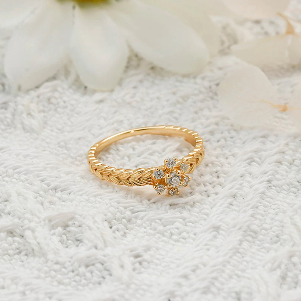 Emotional Factory 925 Sterling Silver 14K Gold Plated Cz Zircon Retro Hollow Flower Snowflake Design Ring
