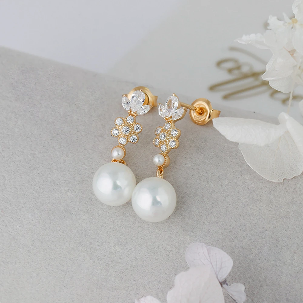 Emotional Factory 925 Sterling Silver 14K Gold Plated Gem Stone Gemstone Cz Zircon Flower Pearl Earrings Emotional Factory 925 Sterling Silver 14K Gold Plated Gem Stone Gemstone Cz Zircon Flower Pearl Earrings