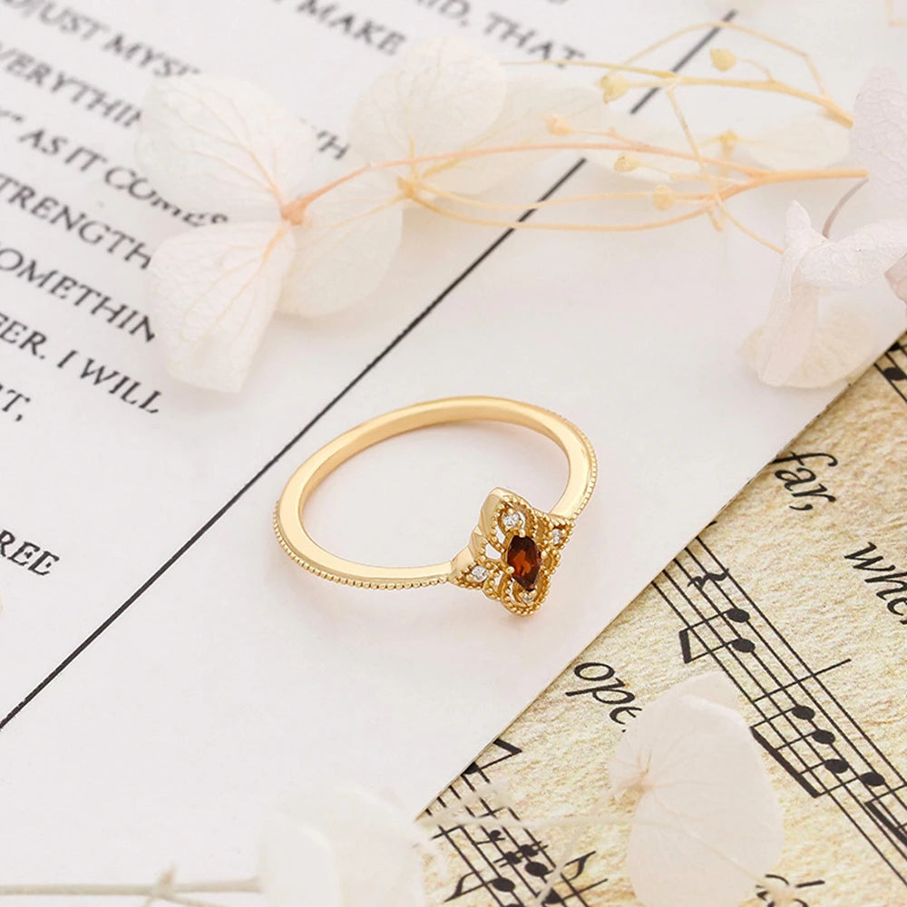 Gemstone Cz Zircon Hollow Red Garnet Ring