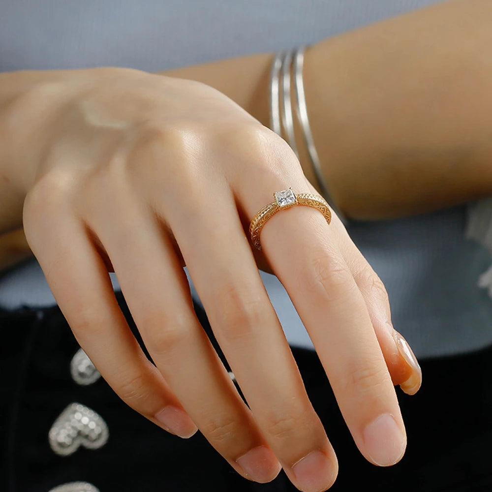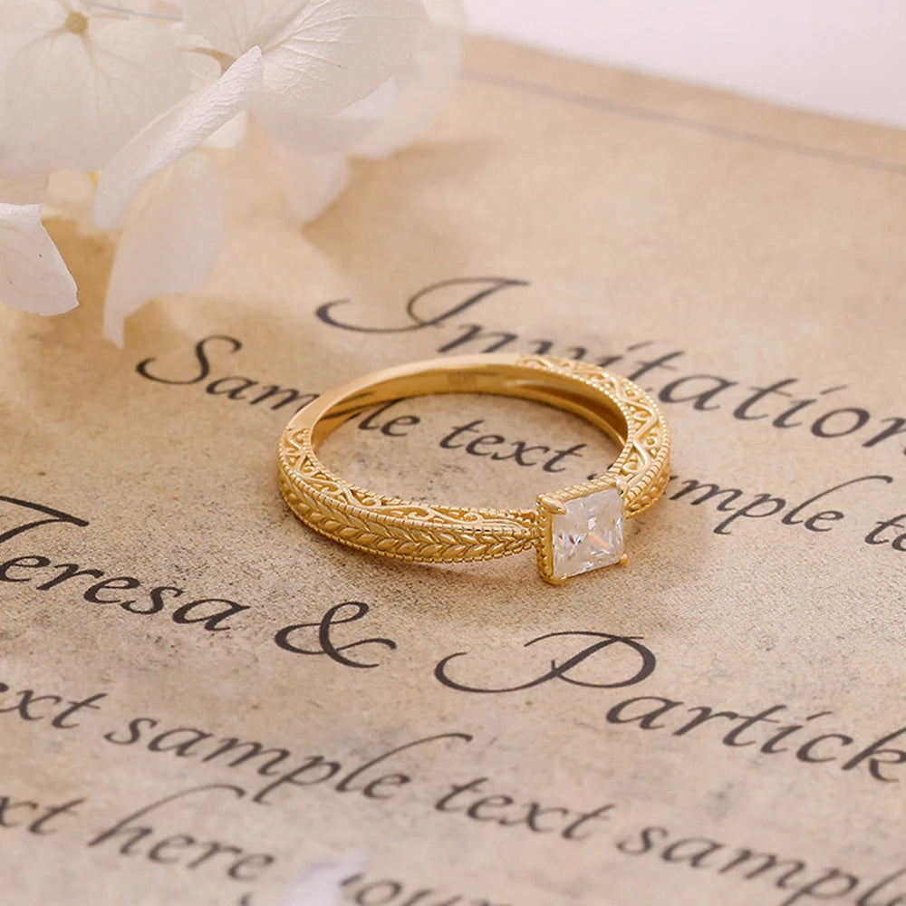Emotional Factory 925 Sterling Silver 14K Gold Plated Gem Stone Gemstone Retro Style Geometric Square Moissanite Zircon Ring
