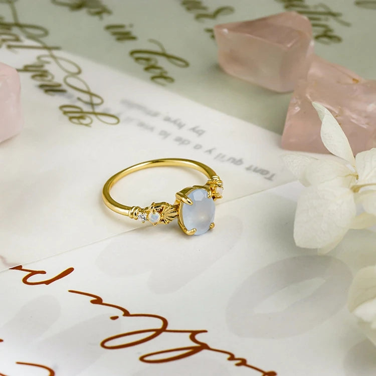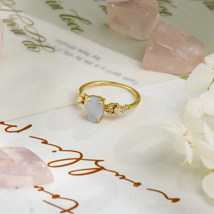 Emotional Factory 925 Sterling Silver 14K Gold Plated Gem Stone Gemstone Summer Shell Necklace Navy Blue Chalcedony Ring