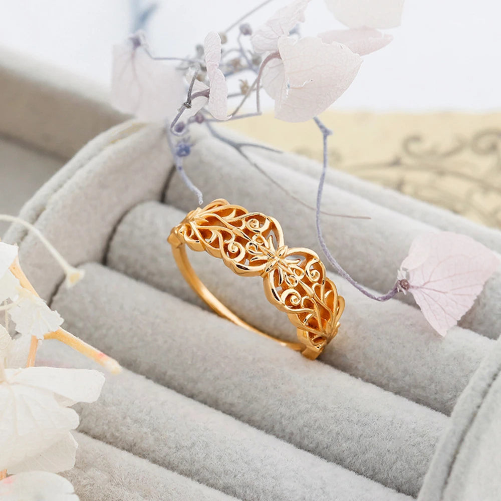 Emotional Factory 925 Sterling Silver 14K Gold Plated Gem Stone Gemstone Wide Butterfly Lace Ring