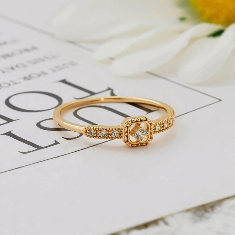 Emotional Factory 925 Sterling Silver 14K Gold Plated Gemstone Bar Cz Zircon Geometric Square Ring