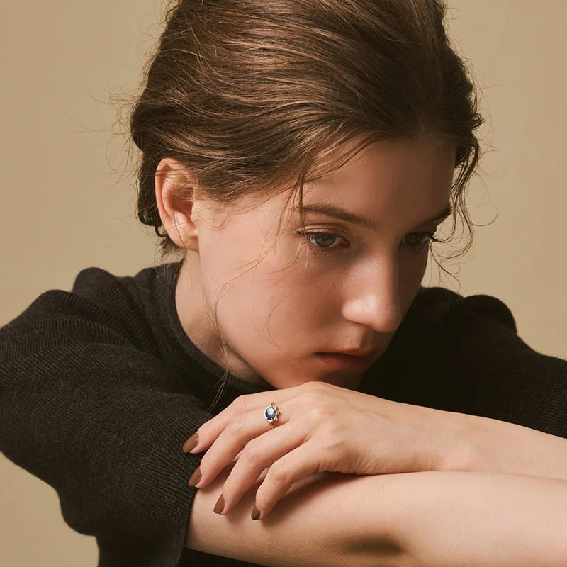 Emotional Factory 925 Sterling Silver 14K Gold Plated Gemstone Blue Glass Red Cz Zircon White Shell Ring